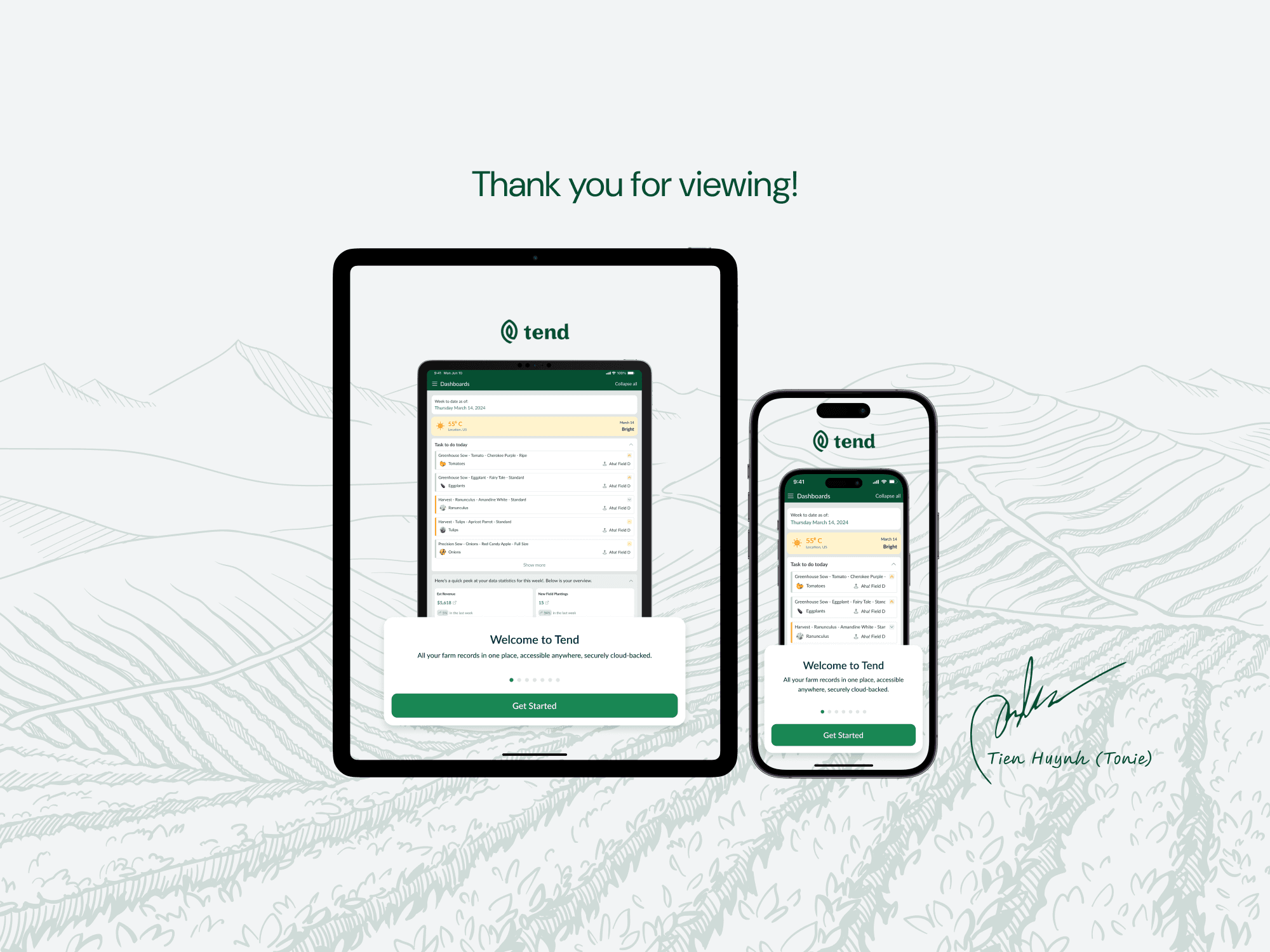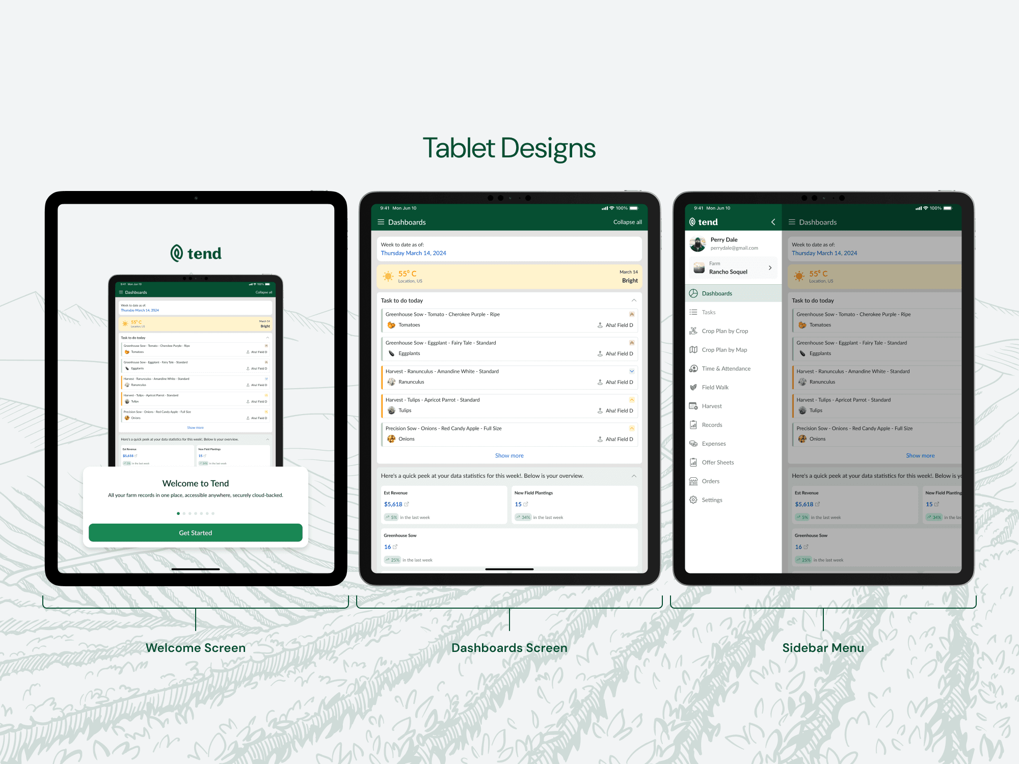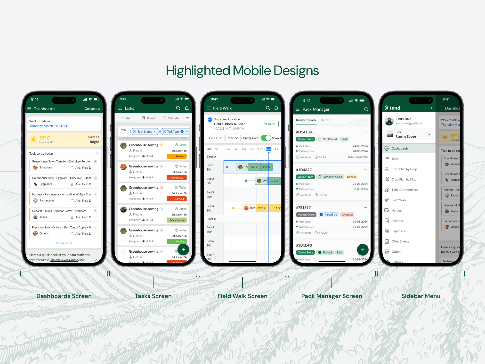 Designing a mobile app for Tend Smart Farm presented the challenge of translating complex agricultural data into intuitive and actionable visualizations. Ensuring usability in diverse field conditions, with varying levels of connectivity and potential environmental distractions, was also paramount. We needed to create a mobile interface that was both informative and easy to navigate, even in challenging environments.
