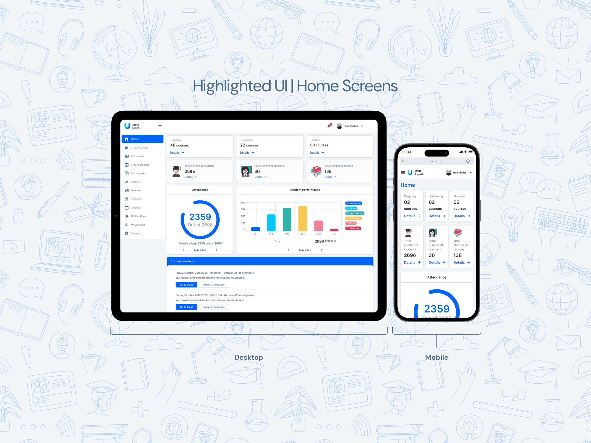 The UI/UX challenge was to create a platform that would be intuitive for administrators and teachers who would be creating content, as well as students who would be consuming it. Balancing the needs of these two very different user groups was a core design challenge.